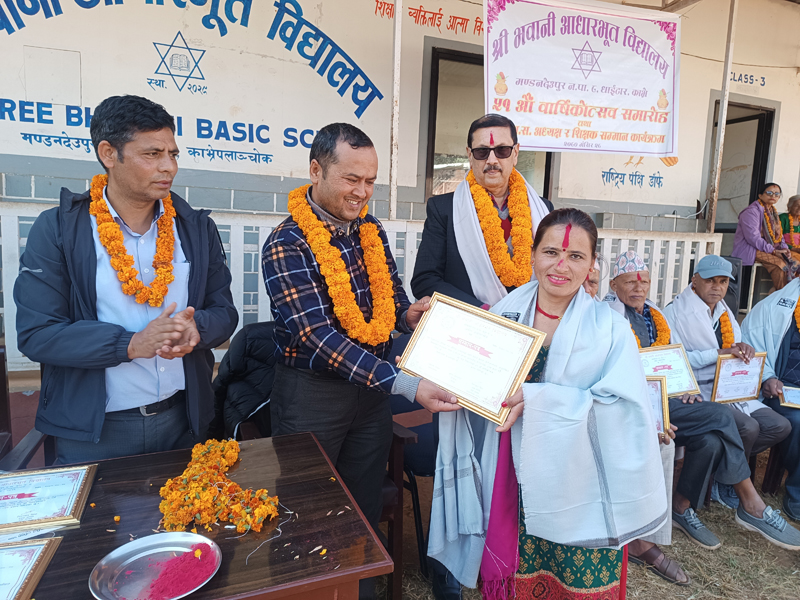 मण्डनदेउपुर नगरपालिका वडा नं ८ का अध्यक्ष निरञ्जन बिष्टको प्रमुख आतिथ्यतामा भएको बार्षिकोत्सवमा स्थापनाकालदेखि विद्यालय व्यवस्थापन समितिका अध्यक्ष तथा पदाधिकारीसँगै शिक्षकलाई सम्मान गरिएको छ ।