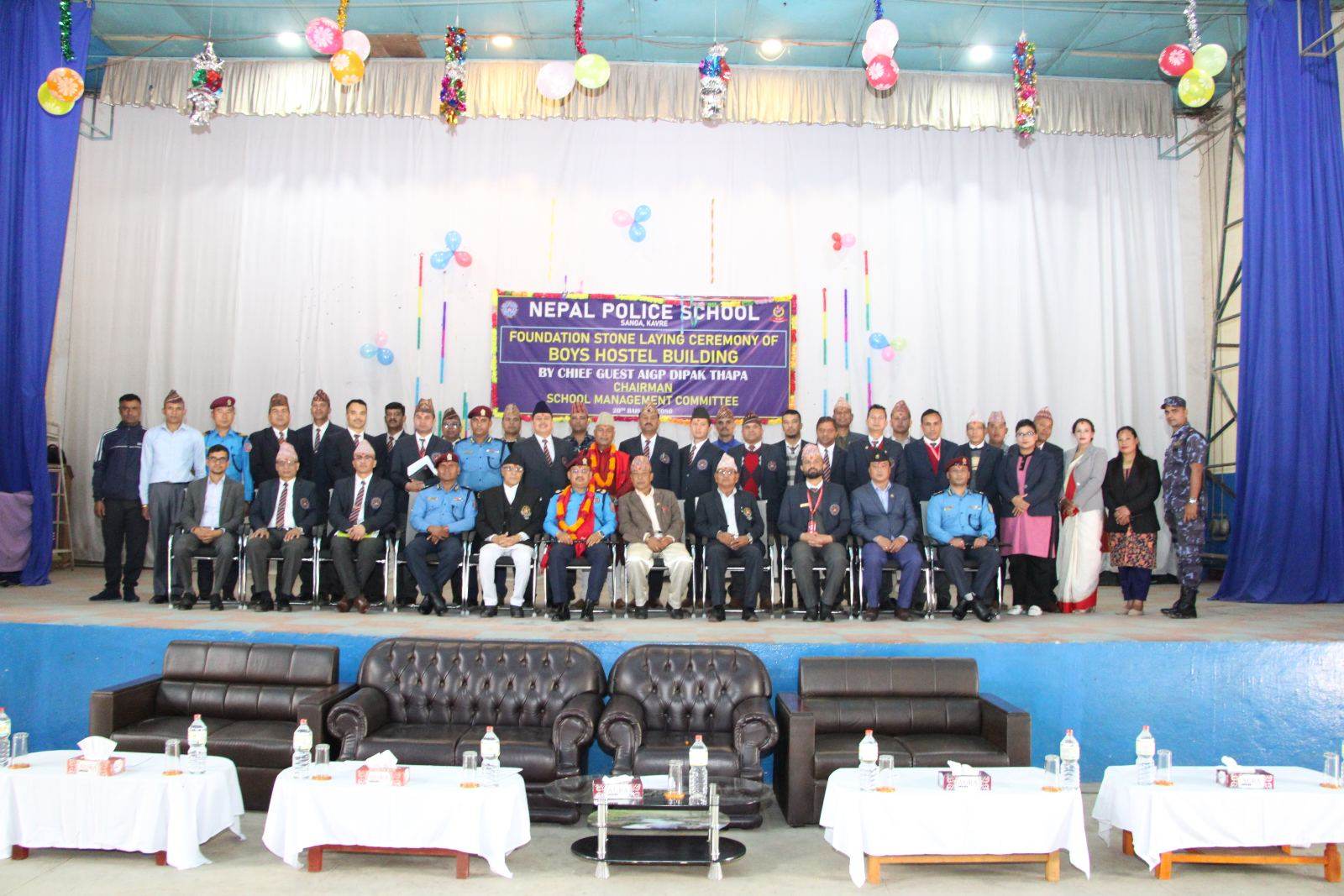 साँगा– २०७२ सालको भूकम्पले क्षति पुर्याएको यस नेपाल पुलिस स्कुल साँगाको भौतिक पूर्वाधार निर्माणका क्रममा विद्यालयको आन्तरिक स्रोतबाट निर्माण हुन लागेको छात्रावास भवनको प्रहरी प्रधान कार्यालय, प्रशासन विभाग, प्रमुख तथा विद्यालय व्यबस्थापन समितिका अध्यक्ष श्रीमान प्र.अ.म.नि.दिपक थापाज्यूको प्रमुख आतिथ्यतमा आज मिति २०८०।०१।२० गते, बुधवार, एक समारोहका बिच भवनको शिलान्यास कार्यक्रम सम्पन्न भयो ।