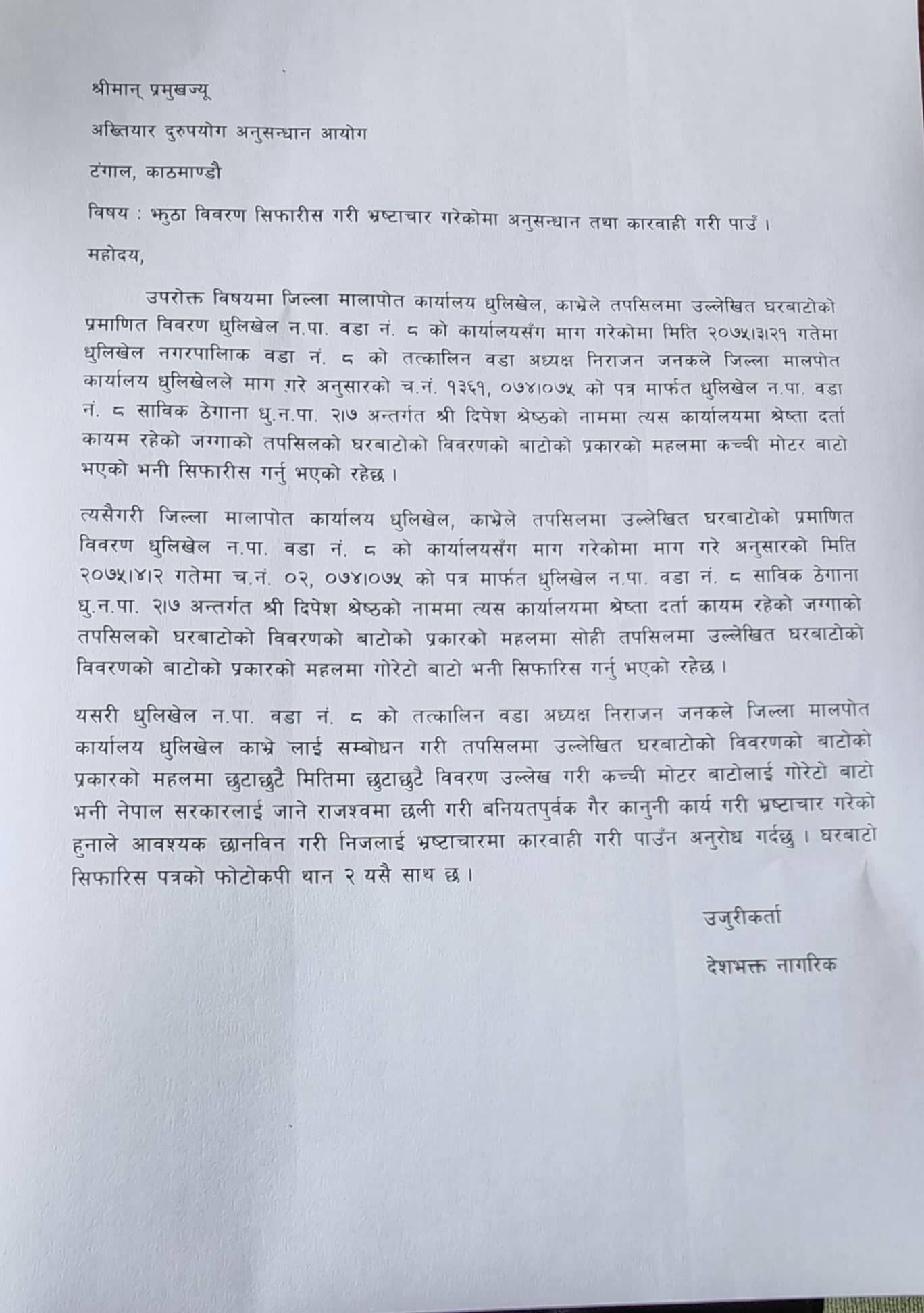 अख्तियारमा दिइएको उजुरी