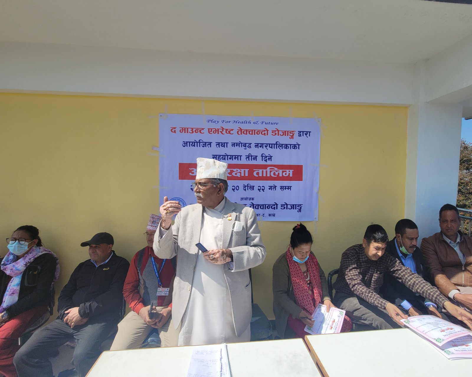 नगरमै पहिलोपटक आयोजना गरिएको आत्मरक्षा तालिम शुक्रबारबाट नमोबुद्ध नगरपालिका ८ मा रहेको दाप्चा माविमा सुरु भएको छ । तालिमको नगर प्रमुख टी.पी शर्मा तिमल्सिनाले उद्घाटन गरेका थिए । नमोबुद्ध नगरपालिका वडा नं १, ७, ८, ९ र १० का विभिन्न पाँचवटा विद्यालयका ४० जना किशोरीहरु तालिमममा सहभागी भएका छन् ।