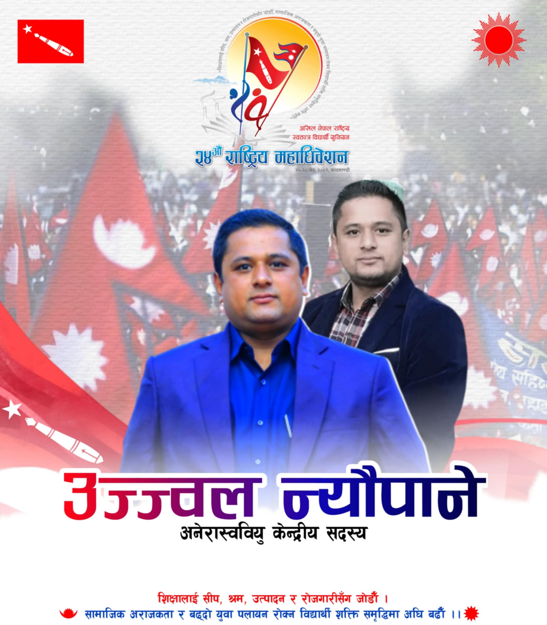 काठमाडौ । विद्यार्थी राजनीतिमा लामो समयदेखि सक्रिय काभ्रे घर भएका काठमाडौं बसेर विद्यार्थी राजनीतिमा तलिन उज्ज्वल न्यौपानेले अनेरास्ववियुको २४ औं राष्ट्रिय महाधिवेशनमा काभ्रेका उज्ज्वल न्यौपानेले उमेदवारि दिएका छन।