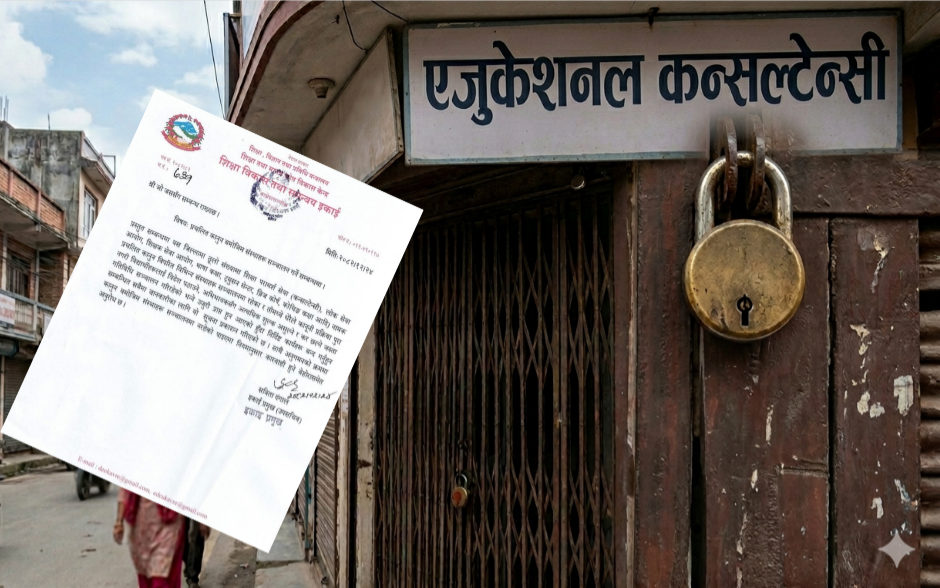 काभ्रे–गत भदौमा जेन्जी आन्दोलनको केही दिन अघि जिल्ला प्रशासन कार्यालय काभ्रेले बनेपामा रहेका एजुकेशनल कन्सल्टेन्सीको अनुगमन गर्यो । अनुगमनको क्रममा अधिकांश कन्सल्टेन्सी विना अनुमति सञ्चालनमा रहेको पाइयो ।प्रशासनले तत्काल दर्ता गरेर चलाउन भन्दै तत्काल कन्सल्टेन्सी बन्द गर्न निर्द...