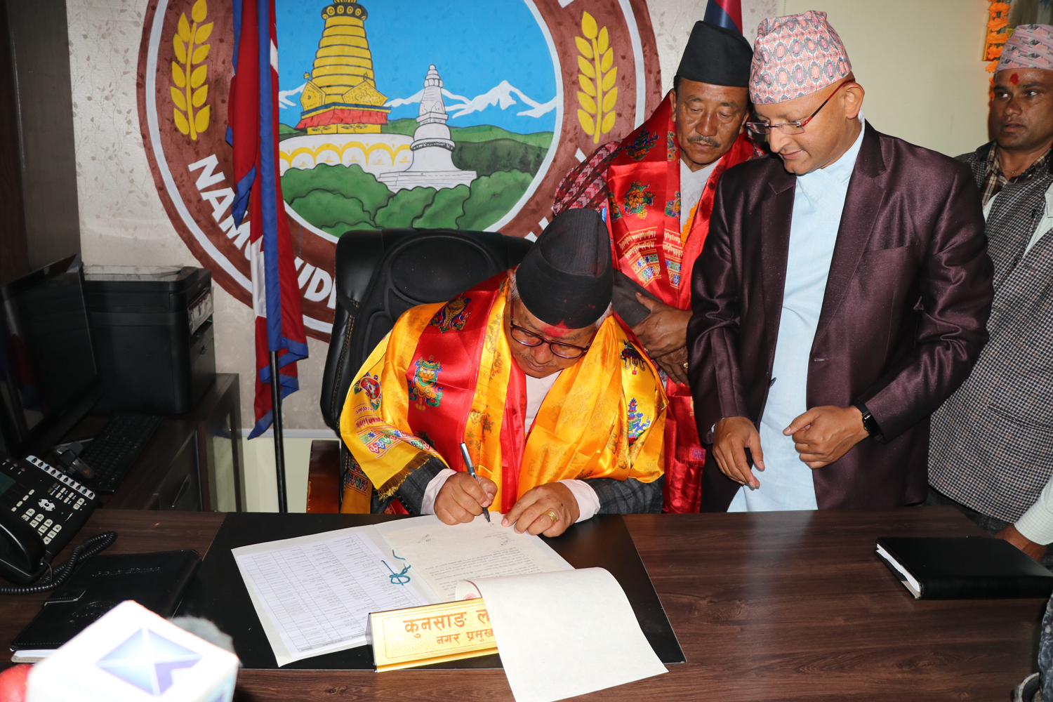 भकुन्डेवेसी- नमोबुद्ध नगरपालिकाको पहिलो कार्यपालिका बैठक प्रवक्ता चयन र न्यायिक समिति गठन गर्दै सम्पन्न भएको छ ।बिहिवार नगर प्रमुख कुनसाङ लामाको अध्यक्षतामा बसेको कार्यपालिकाको पहि...