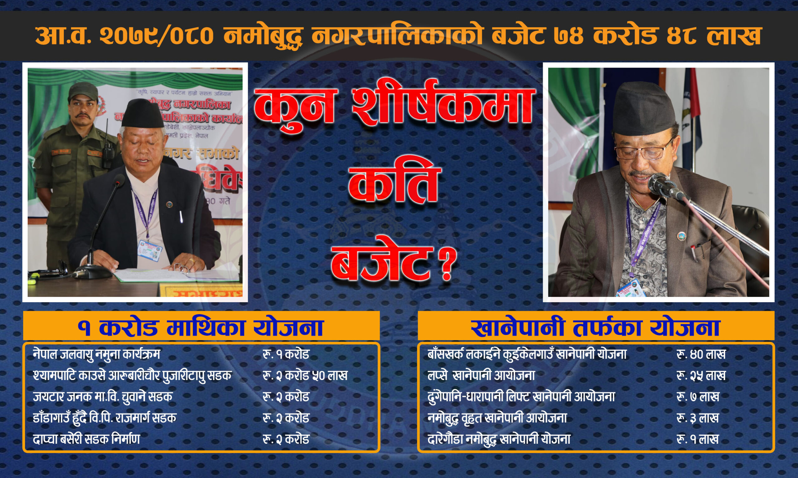भकुण्डेबेशी–नमोबुद्ध नगरपालिकाले आगामी आर्थिक बर्ष २०७९/८० को नीति तथा कार्यक्रम र बजेट सार्वजनिक गरेको छ । नमोबुद्धको दोस्रो नगरसभाको पहिलो अधिवेशनमा शुक्रबार नगर प्रमुख कुनसाङ ला...