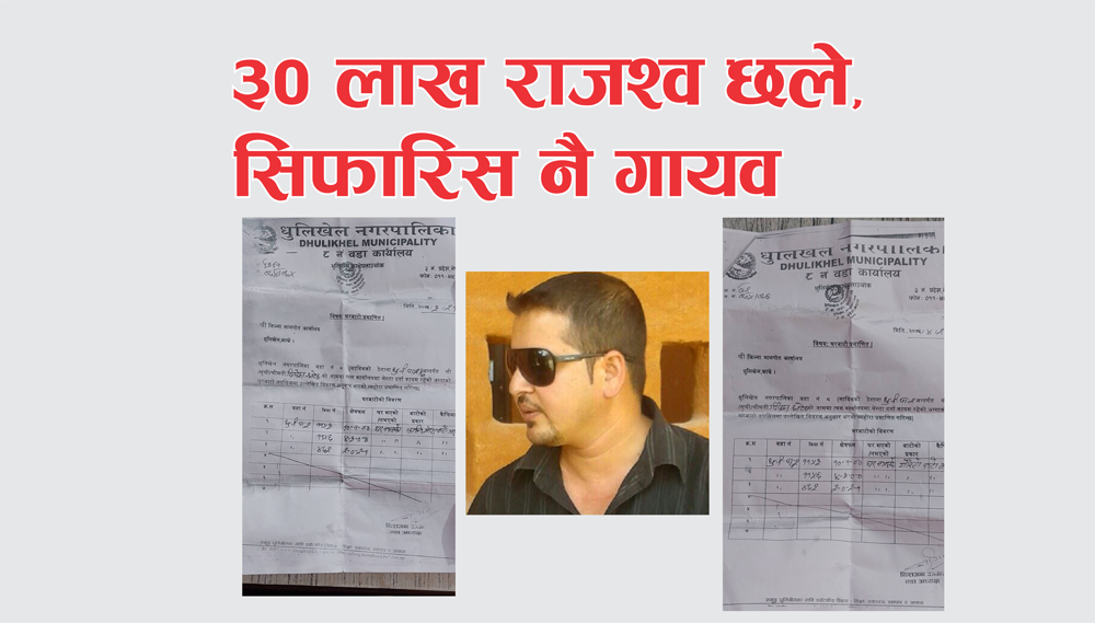 धुलिखेल-नेपाली काँग्रेसका नव प्रवेशी निराजन जंगमले स्वार्थ सहित मालपोत कार्यालय काभ्रेले प्राप्त गर्ने राजश्व छलीका लागि नक्कली सिफारिस बनाई सहयोग पु¥याएको खुलासा भएको छ । तत्कालि...