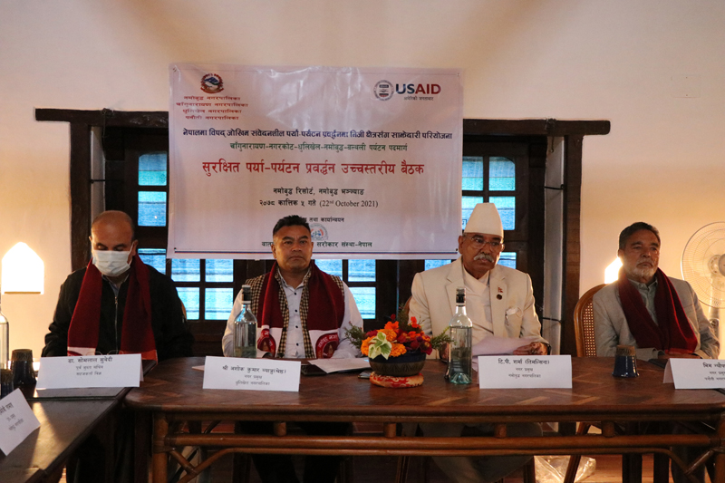 नमोबुद्ध–सुरक्षित पर्या–पर्यटन प्रवर्द्धनसम्वन्धी उच्चस्तरीय बैठक नमोबुद्ध नगरपालिकामा सम्पन्न भएको छ । नमोबुद्ध नगरपालिकासहित काभ्रेको धुलिखेल नगरपालिका र पनौती नगरपालिकाको स...